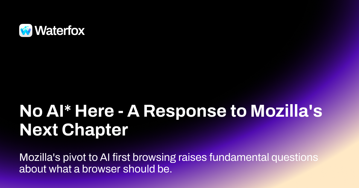Waterfox argues browsers should be careful with LLMs: constrained, auditable ML features (like local translation) are different from general-purpose models with broad access to your browsing context.